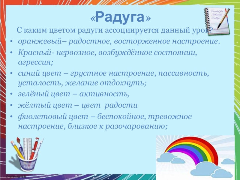 Карточка желтого цвета: «Урок был интересен и я принимал в нем активное участие, урок был в определенной степени полезен для меня, я отвечал с места, я сумел выполнить ряд заданий, мне было на уроке достаточно комфортно»