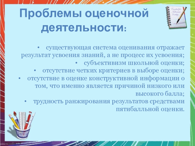 Слайд 8существующая система оценивания отражает результат усвоения знаний, а не процесс их