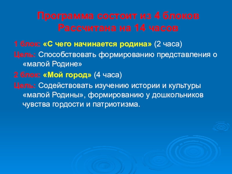 Слайд 9Программа состоит из 4 блоков