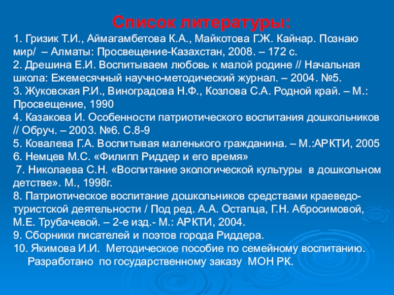 10. Якимова И.И. Методическое пособие по семейному воспитанию. Разработано по государственному заказу МОН РК.