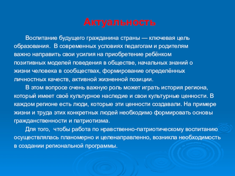 Воспитание будущего гражданина страны — ключевая