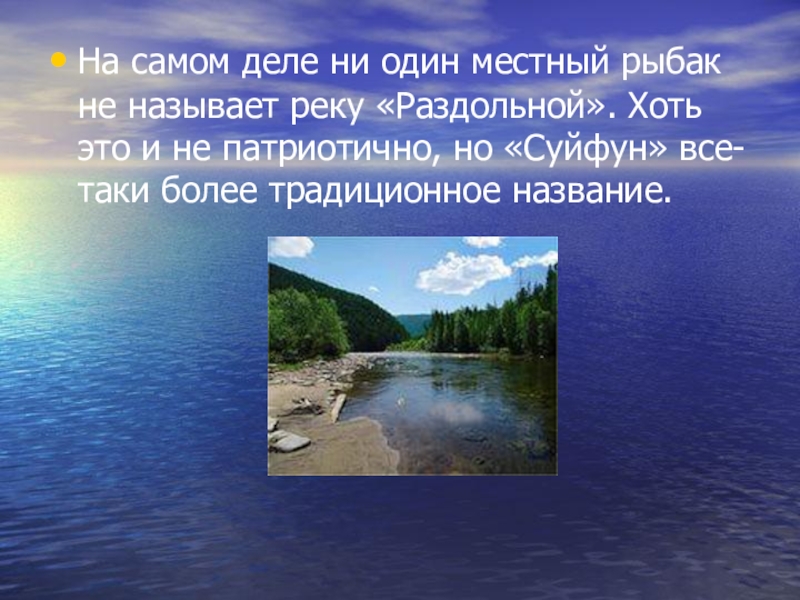 На самом деле ни один местный рыбак не называет реку «Раздольной».