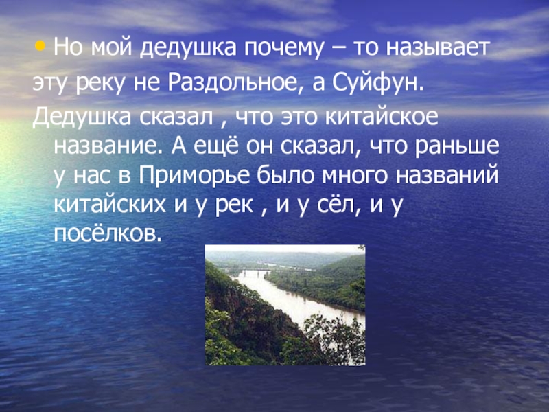 Интересно, что до 1972 года река носила название «Суйфун» (Суйфун-хэ) —
