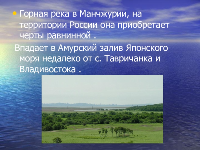 Горная река в Манчжурии, на территории России она приобретает черты равнинной