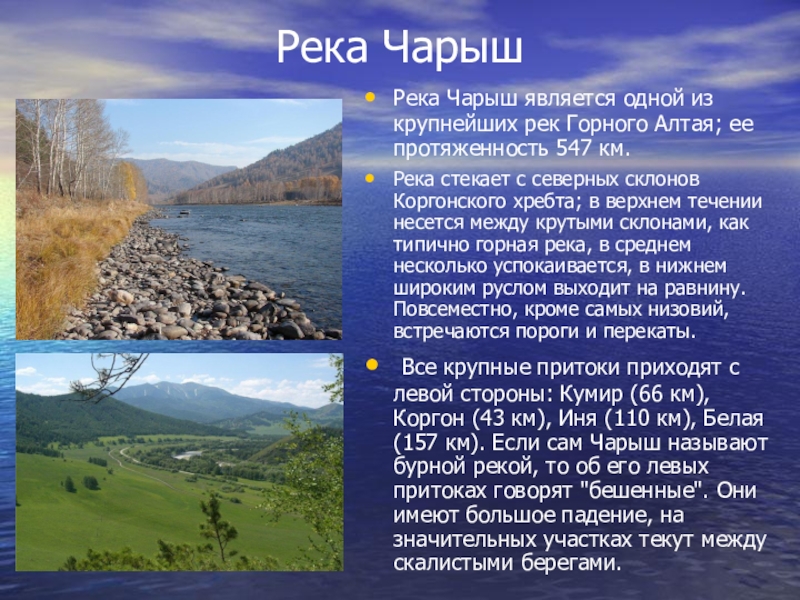 Река Чарыш является одной из крупнейших рек Горного Алтая; ее