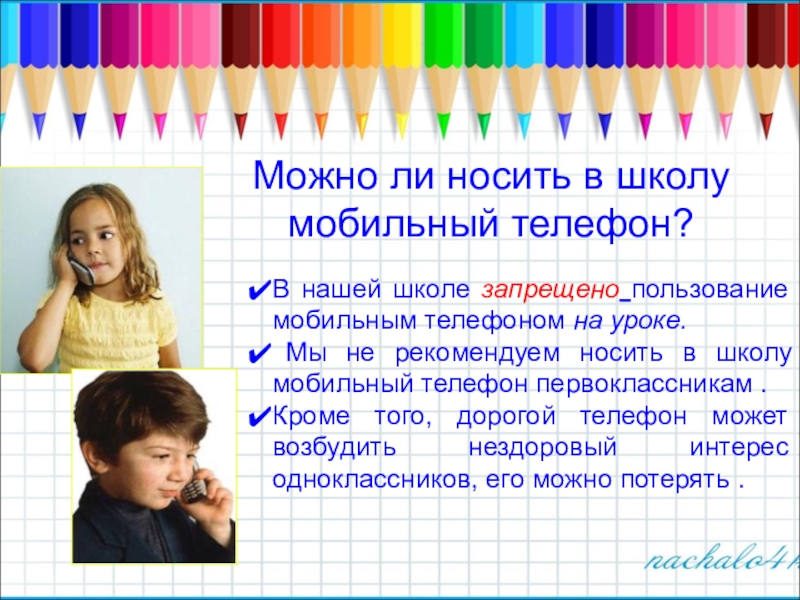 Мы не рекомендуем носить в школу мобильный телефон первоклассникам .