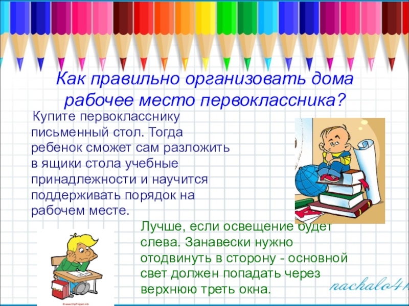 Слайд 19Как правильно организовать дома рабочее место первоклассника?