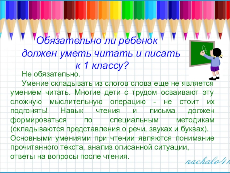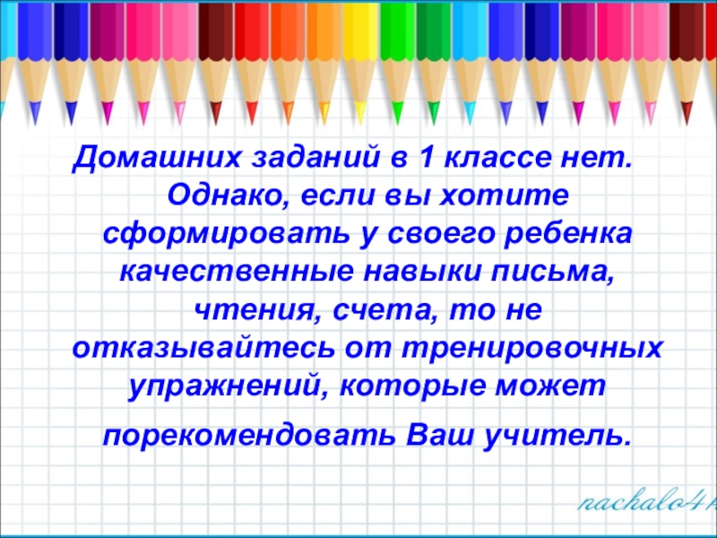 Слайд 6Домашних заданий в 1 классе нет. Однако, если вы хотите сформировать