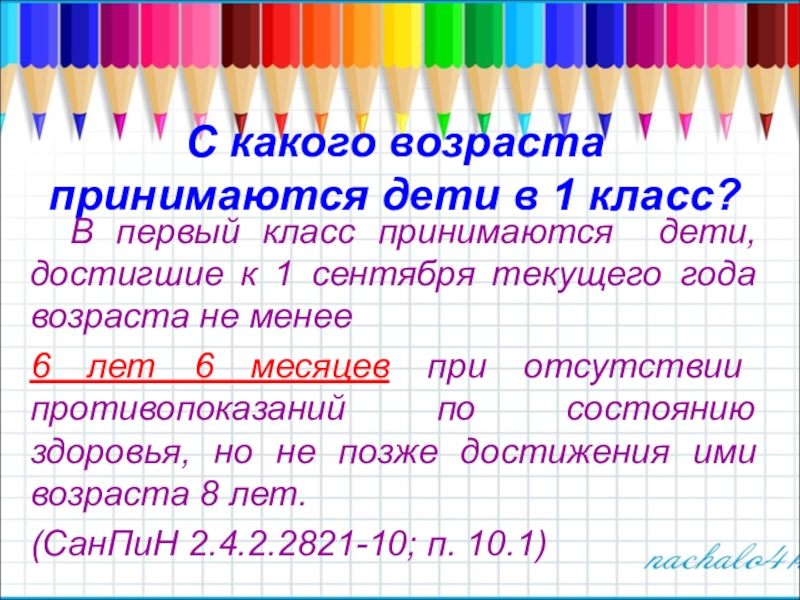 Слайд 3С какого возраста принимаются дети в 1 класс?