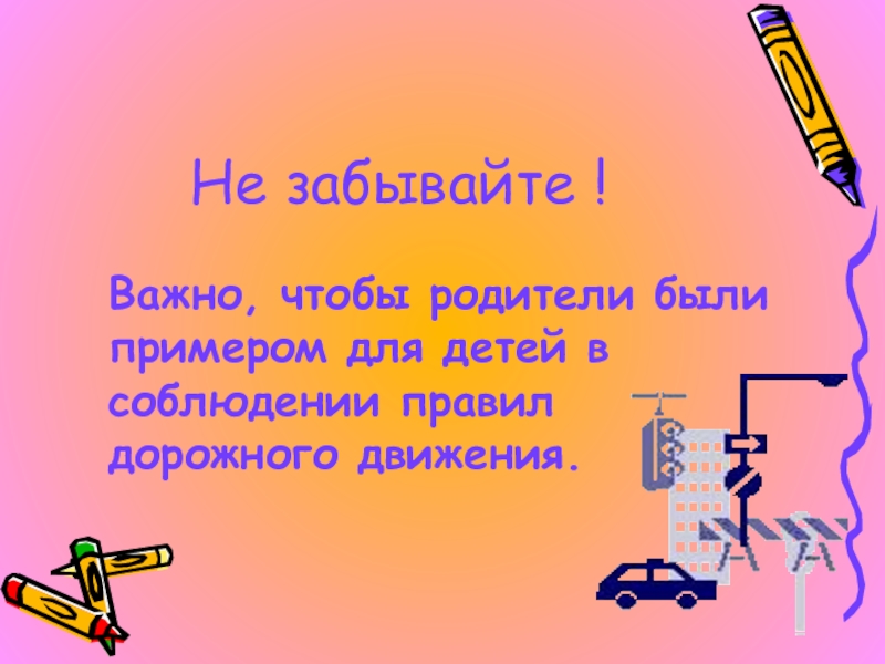 При переходе по нерегулируемому перекрестку учите ребенка внимательно следить за началом движения транспорта;