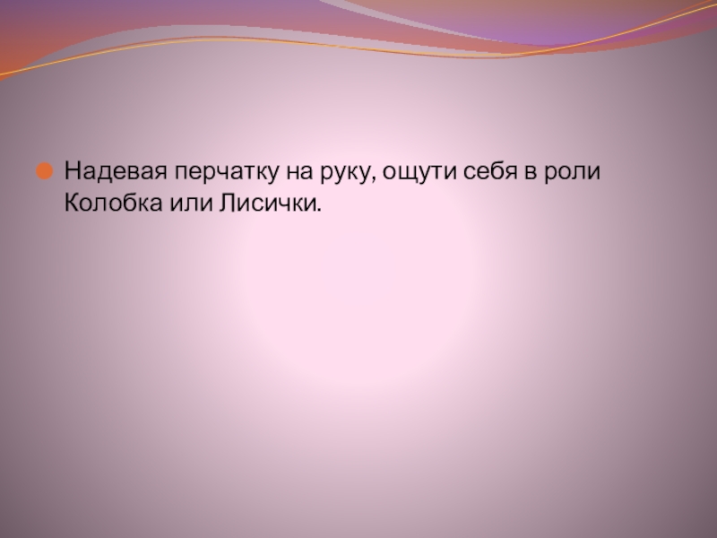 Слайд 3Надевая перчатку на руку, ощути себя в роли Колобка или Лисички.