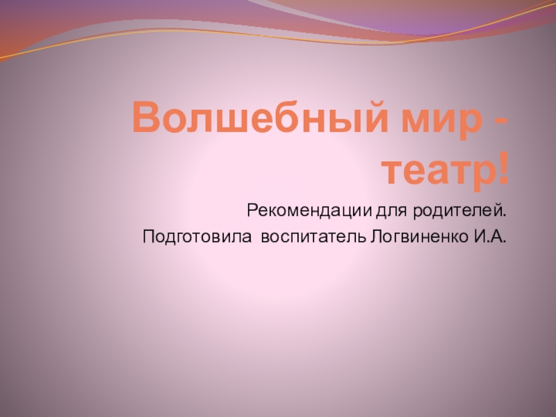 Волшебный мир - театр!Рекомендации для родителей.Подготовила воспитатель Логвиненко И.А.