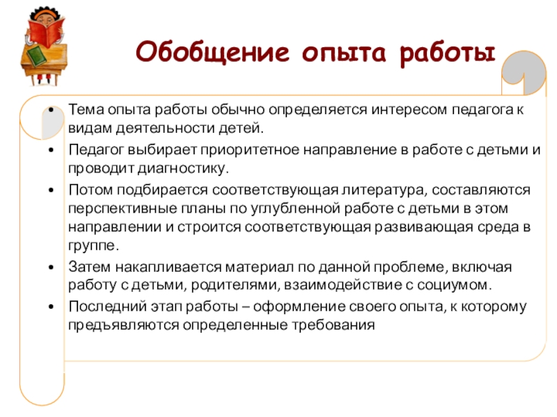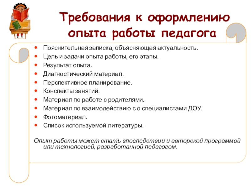 Последний этап работы – оформление своего опыта, к которому предъявляются определенные требования