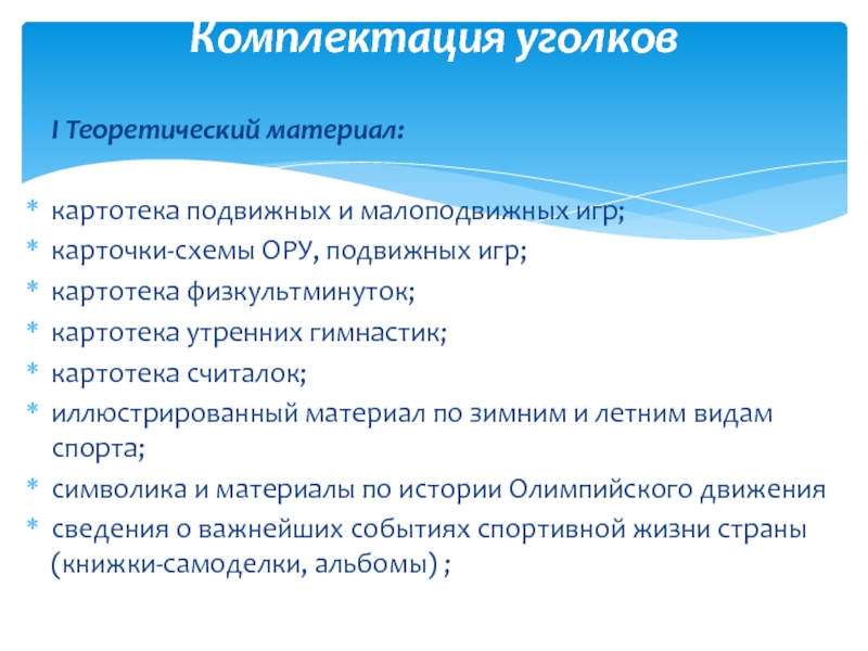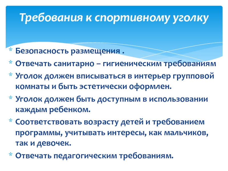 Требования к спортивному уголку