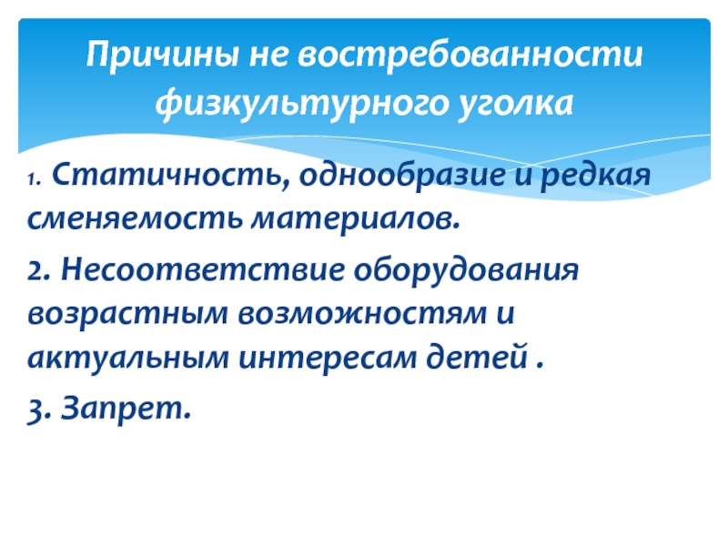 Причины не востребованности физкультурного уголка