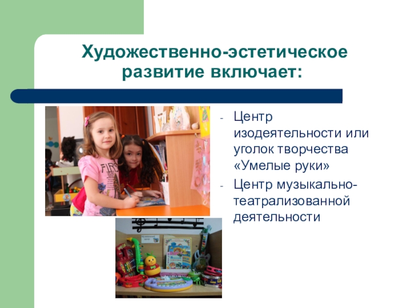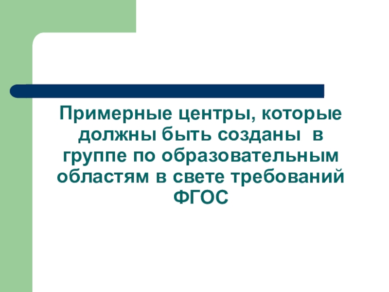 Слайд 19Примерные центры, которые должны быть созданы в группе по образовательным областям