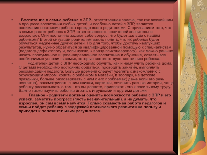 Воспитание в семье ребенка с ЗПР- ответственная задача, так как
