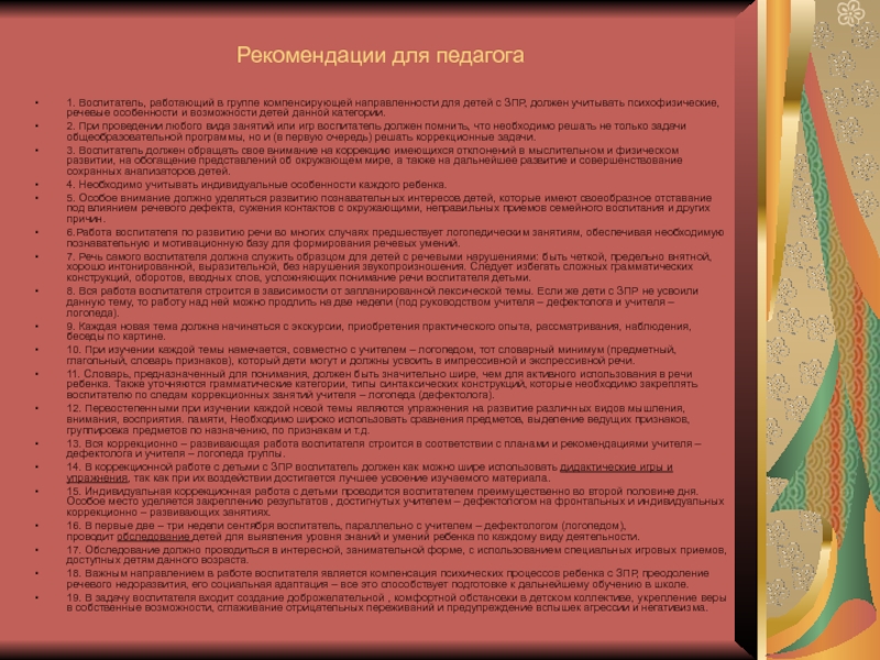 Слайд 5Рекомендации для педагога