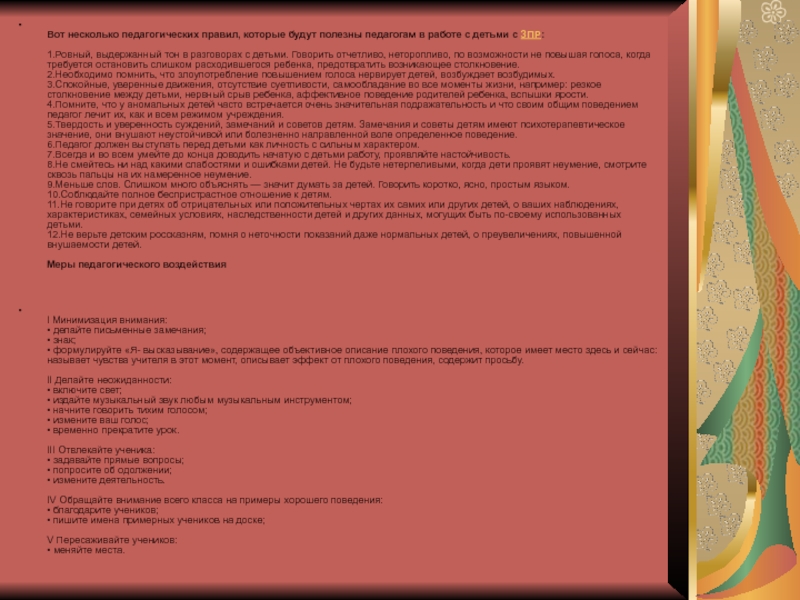 Вот несколько педагогических правил, которые будут полезны педагогам в работе с
