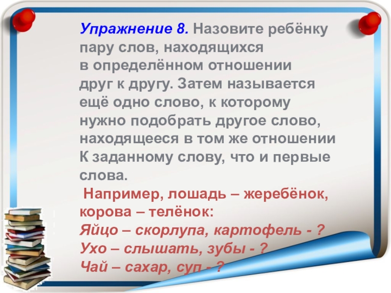 Слайд 8 Упражнение 4. Назовите ребёнку
