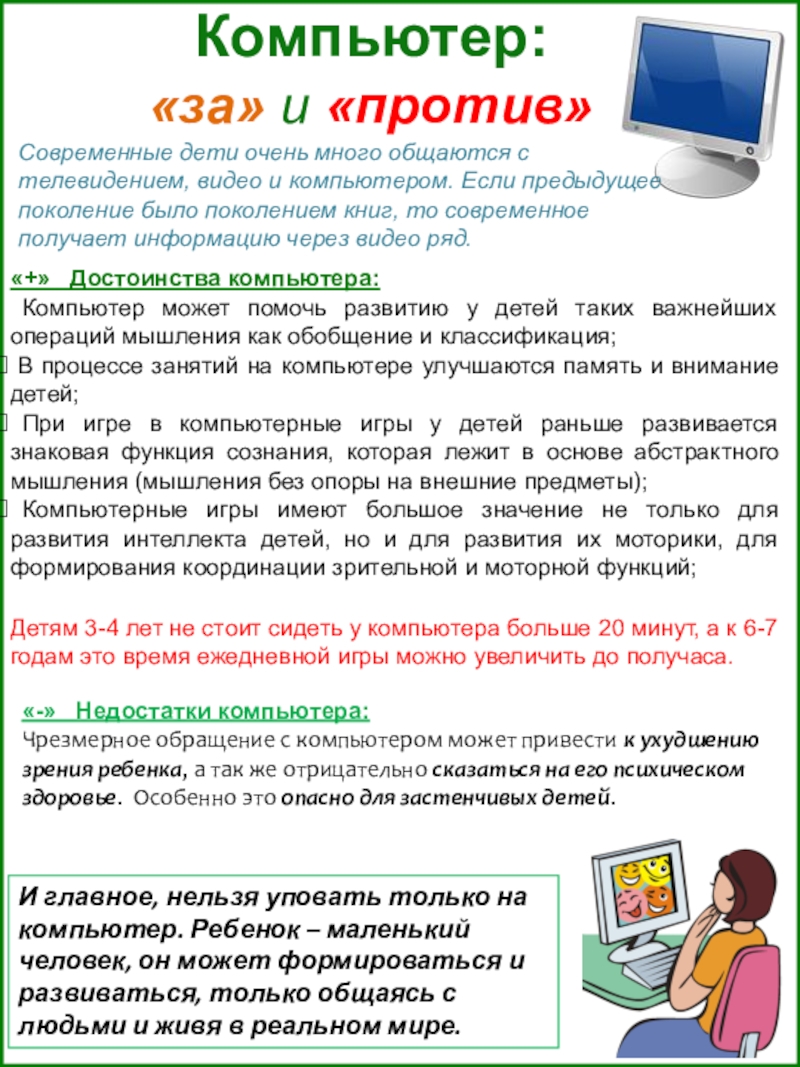 И главное, нельзя уповать только на компьютер. Ребенок – маленький человек, он может формироваться и развиваться, только общаясь с людьми и живя в реальном мире.