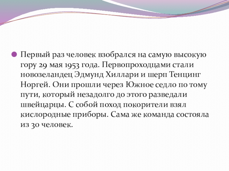 Первый раз человек взобрался на самую высокую гору 29 мая 1953
