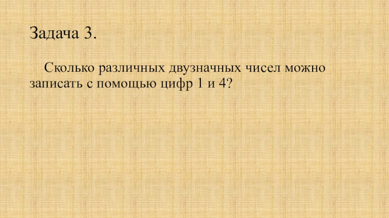 Задача 3.	Сколько различных двузначных чисел можно записать с помощью цифр 1 и 4?