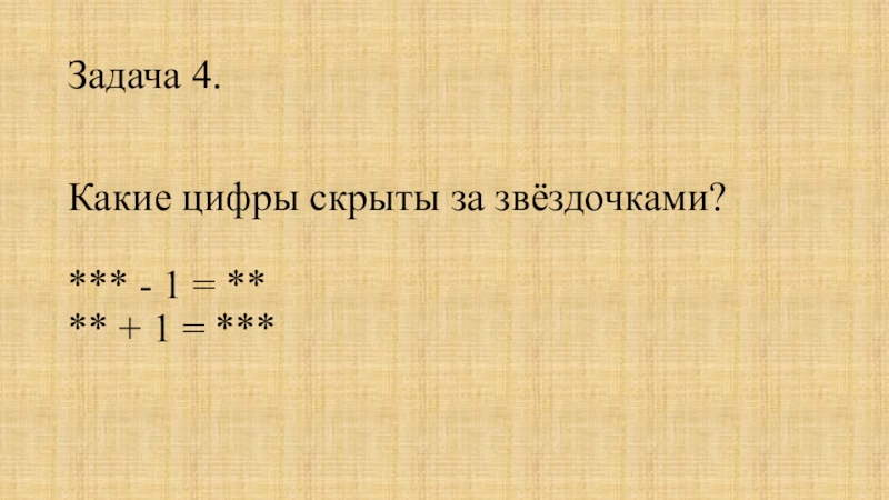Задача 4.Какие цифры скрыты за звёздочками?*** - 1 = **** + 1 = ***