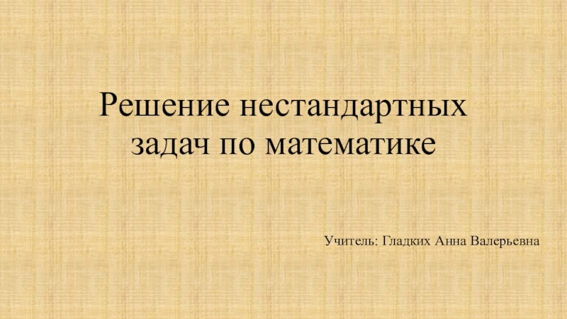 Решение нестандартных задач по математикеУчитель: Гладких Анна Валерьевна