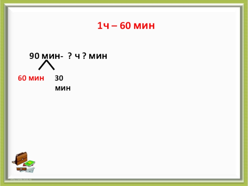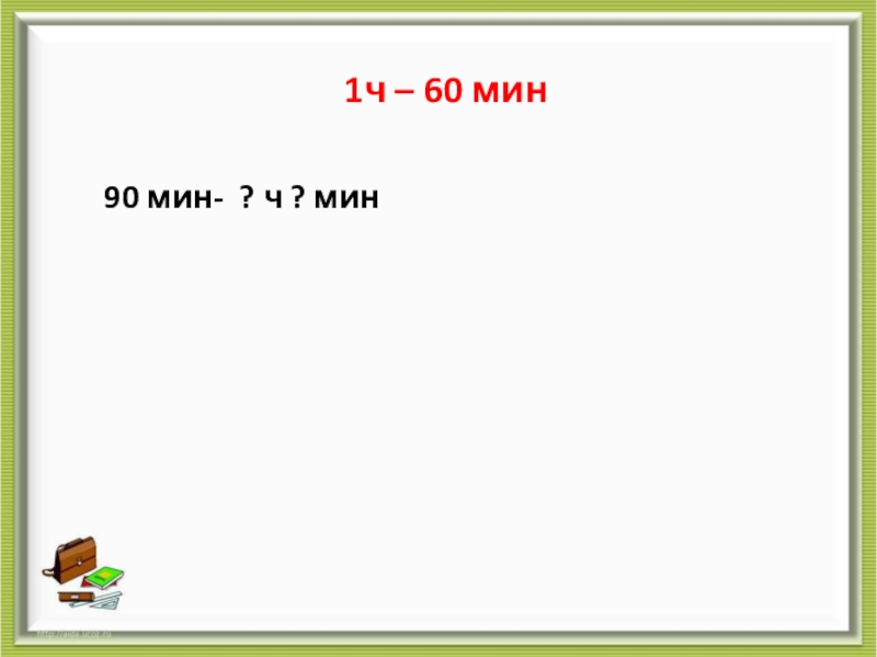 1ч – 60 мин90 мин- ? ч ? мин60 мин30 мин