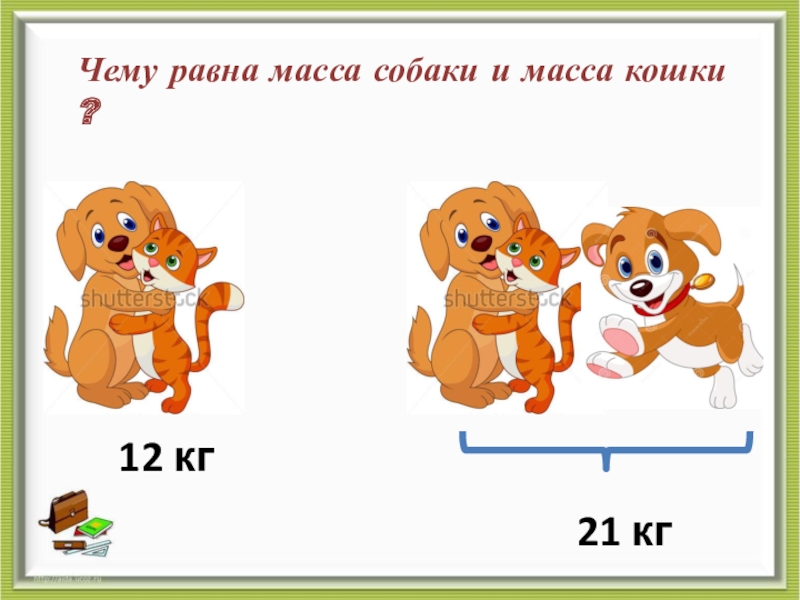 12 кг21 кгЧему равна масса собаки и масса кошки ?