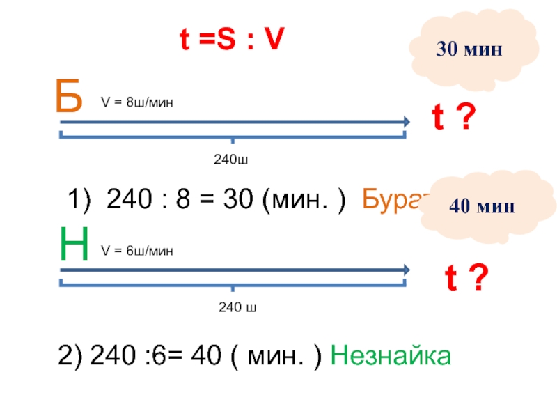 2) 240 :6= 40 ( мин. ) Незнайка