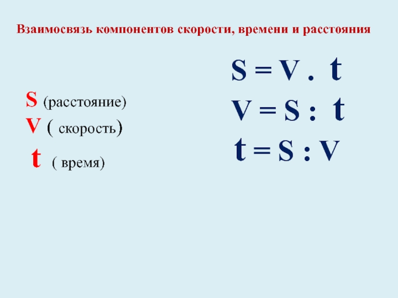 Взаимосвязь компонентов скорости, времени и расстояния