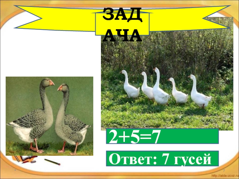*2+5=7Ответ: 7 гусейЗАДАЧА