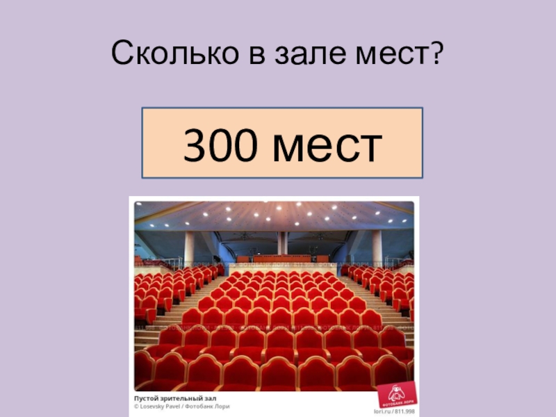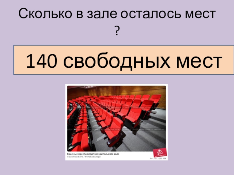 Слайд 8В зале- 300 мест Заняли- 8 рядов Осталось-140 мест Сколько мест в ряду?