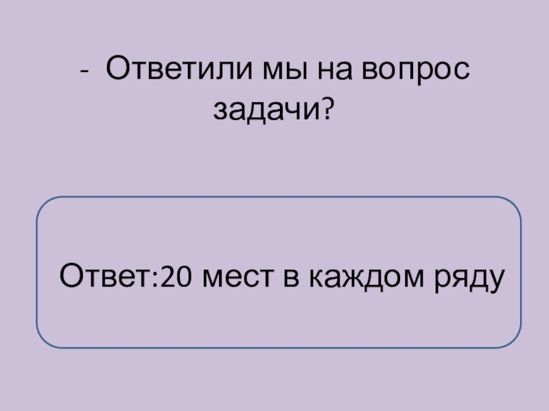 - Ответили мы на вопрос задачи? Ответ:20 мест в каждом ряду