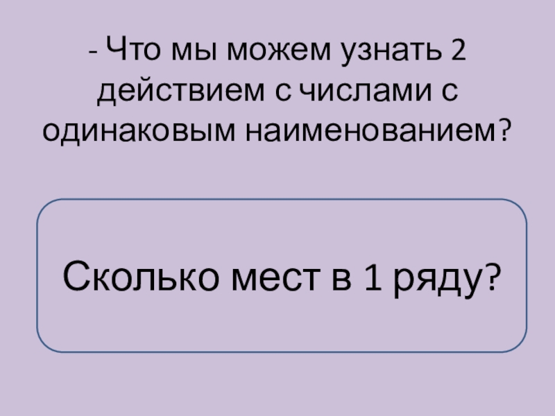 - Что мы можем узнать 2 действием с числами с одинаковым наименованием?Сколько мест в 1 ряду?