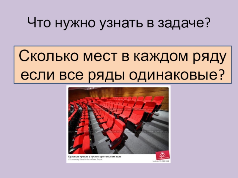 Что нужно узнать в задаче?Сколько мест в каждом ряду если все ряды одинаковые?