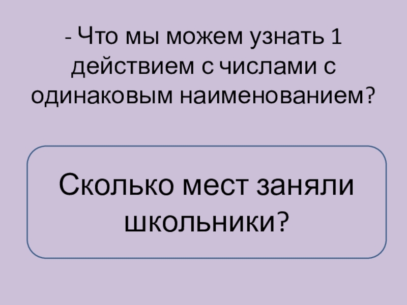 - Что мы можем узнать 1 действием с числами с одинаковым наименованием?Сколько мест заняли школьники?