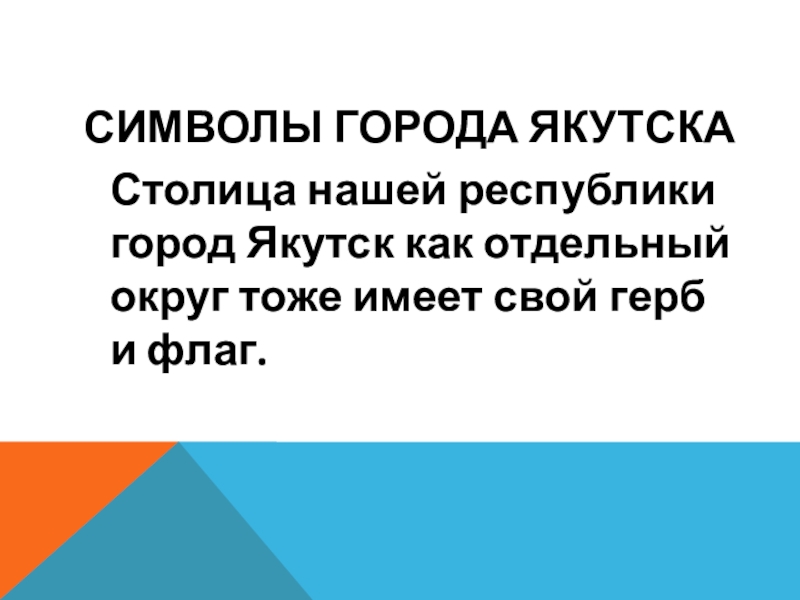 СИМВОЛЫ ГОРОДА ЯКУТСКА  Столица нашей республики город Якутск как отдельный округ тоже имеет свой герб и