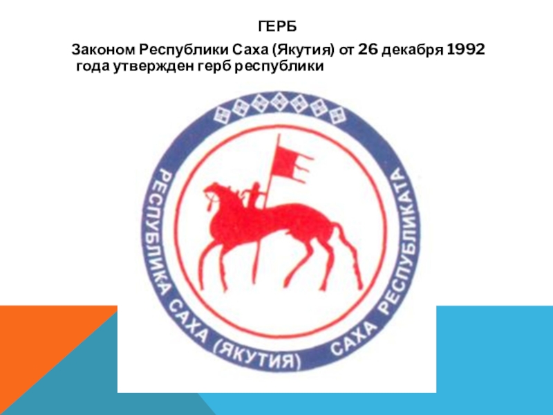 ГЕРБ   Законом Республики Саха (Якутия) от 26 декабря 1992 года утвержден герб республики