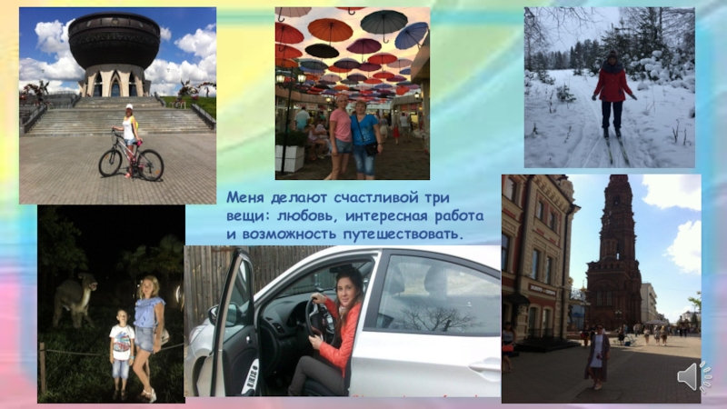 Слайд 27Меня делают счастливой три вещи: любовь, интересная работа и возможность путешествовать.