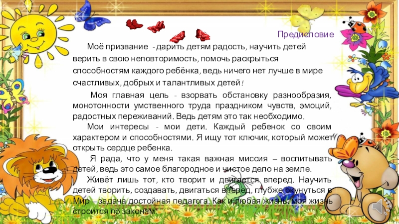Моё призвание - дарить детям радость, научить детей верить в свою