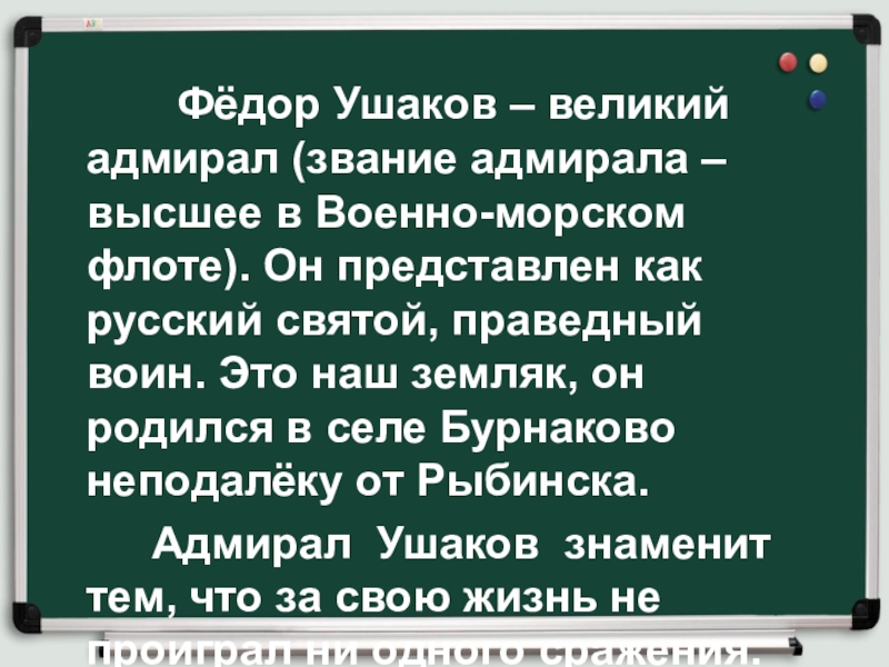 Адмирал Ушаков знаменит тем, что за свою жизнь не проиграл ни одного сражения.