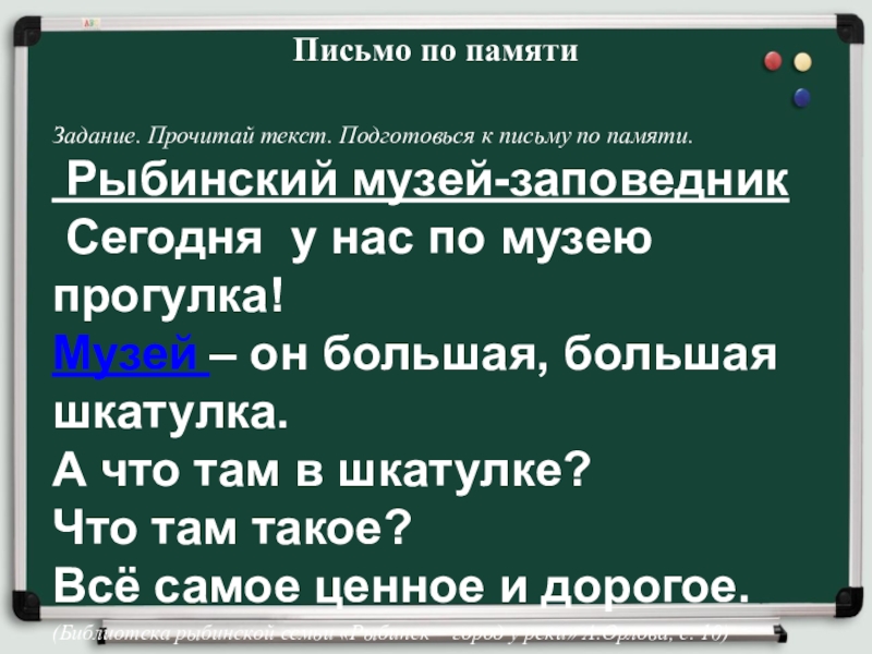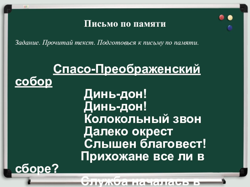 Задание. Прочитай текст. Подготовься к письму по памяти.