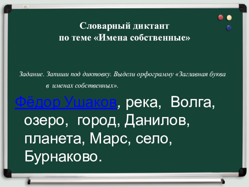 Слайд 14Объяснительный диктант по теме «Имена собственные»
