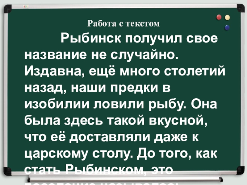 название не случайно. Издавна, ещё много столетий назад, наши предки в изобилии ловили рыбу. Она была здесь такой вкусной, что её доставляли даже к царскому столу. До того, как стать Рыбинском, это поселение называлось Рыбная слобода.
