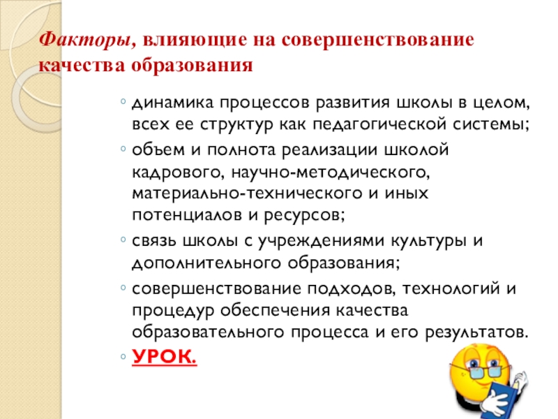 Слайд 2Факторы, влияющие на совершенствование качества образования