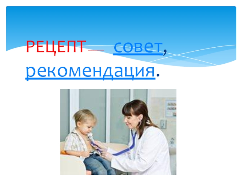 Слайд 3РЕЦЕПТ -------- совет, рекомендация.