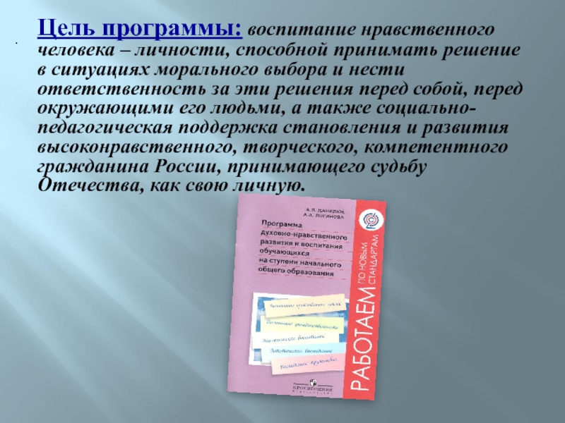 Слайд 7Цель программы: воспитание нравственного человека – личности, способной принимать решение в ситуациях